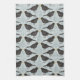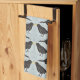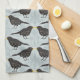 Black bird tea towel with illustrations of Hackney Empire in the background.