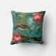 BLACK BIRDS, PINK ROSES AQUA BLUE,TEAL DAMASK CUSHION