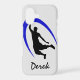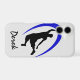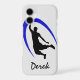 On this phone case, a black silhouetted basketball player is dunking the ball, with a bright blue swirl design behind him. A text field allows you to personalise it, if you wish. Perfect for the basketball player or fan. *Clip art used in this design is copyrighted by Encore Software, Inc., which permits use to its licensors. All rights reserved.