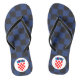 These flip flops feature a black and blue chequerboard pattern and the Croatian coat of arms.