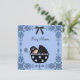 Adorable black and blue baby boy shower invitations. This blue and black baby shower invitation features a sweet baby boy in a black and blue carriage with an elegant edge and black bow and is easily customised for your event by simply adding your event details, font style, font size & colour, and wording.
