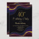 Black Blue Gold Glitter 40th Birthday Party Invitation