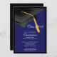 Start off your event right with our trendy & stylish black grad cap with with a black border with a navy blue background graduation party invitation. Perfect graduation invitation for a high school graduation or college graduation. Just fill in your information add your photo and you're all set to go. Visit our shop at www.celebrateitgraduations.com for a large assortment of graduation invitations! graphics©delightful-doodles