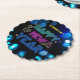 Black & Blue Midnight Sparkle Neon Glow New Year Paper Coaster
