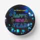 Black & Blue Midnight Sparkle Neon Glow New Year Paper Plate