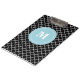 Show off your style in a fun way with this black and light blue quatrefoil modern and trendy personalised clipboard.