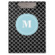 Black Blue Quatrefoil Monogram Clipboard