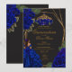 Black Royal Blue Roses & Gold Princess Quinceañera Invitation