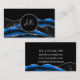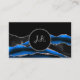 Black Blue Silver Initials Agate Glam Marble Business Card