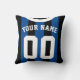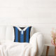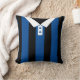 Easy to edit football shirt / soccer / rugby style sports jersey design throw pillow. This design has black and blue vertical stripes, with white trim and buttoned collar design.