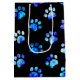 Black Blue Textured Paw Print Pattern Medium Gift Bag