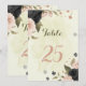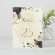 Beautiful romantic table number card featuring black and blush pink flowers and some pretty leaves .