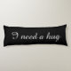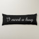 Black body pillow with custom text | I need a hug. Elegant script typography. Long bedroom cushion for sleeping and hugging.