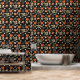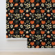 Black Boho Halloween Skulls and Pumpkins Wallpaper