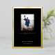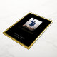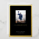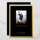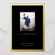 This modern and classic graduation announcement features a single photo designed to feel like it is displayed in an art gallery with a large, bold real foil gold border around the edge of the card and the graduate's name and school near the bottom of the card. The black background creates a sophisticated backdrop for the graduate's photo. The back compliments the front with an additional photo in a thick black frame and a place for additional details.