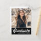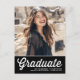 Invite family and friends with this customisable class of 2023 graduation invitation postcard. It features a white retro script typography on a black background. Personalise this black graduation party postcard by adding your photo, name and school name. This photo graduation invitation postcard is perfect for high school or college graduations.