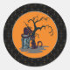 Black Border Black Cats Tombstone Tree Halloween Classic Round Sticker