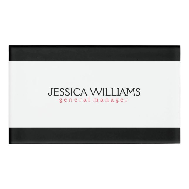 Simple elegant black and white border with customisable text-Name and title. Pink and black suggested for text colour.