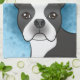 Black Boston Terrier Cartoon Dog Head On Blue Tea Towel