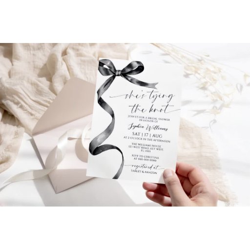 Add a touch of timeless elegance to your bridal shower or wedding event with our Black Bow Display Shower Enclosure Card. Designed to convey information with sophistication, this card is both practical and stylish.