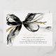 A flowing black watercolor bow stretches across this invitation like a ribbon caught in a breeze, accented by delicate touches of the real gold foil. The light, airy script adds a personal feel, creating a look that is both unique and full of character. Set against a crisp white background, the black and gold details remain strikingly bold and beautiful. This design is the perfect match for a whimsical boho or retro-inspired bridal shower, offering a creative twist for the bride who loves elegance with a touch of playfulness.