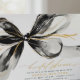 A flowing black watercolor bow stretches across this invitation like a ribbon caught in a breeze, accented by delicate touches of gold. The light, airy script adds a personal feel, creating a look that is both unique and full of character. Set against a crisp white background, the black and gold details remain strikingly bold and beautiful. This design is the perfect match for a whimsical boho or retro-inspired bridal shower, offering a creative twist for the bride who loves elegance with a touch of playfulness.