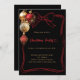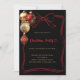 For a Christmas party with family and friends.. Decorated with a red simple hand-drawn bow, red and gold baubles. Personalise and add the details. Christmas party with a heart. Black background.
