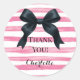Black Bow with Pink White Stripe Custom Classic Round Sticker