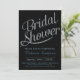 Faux silver glitter and two shades of blue detail text give these bridal shower invitations a striking and fun look.