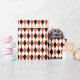 A wrapping paper designed with a black, bright orange and white harlequin pattern. Customise the white background colour among other options.