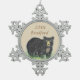 Black brown bear, Personalise name date Snowflake Pewter Christmas Ornament