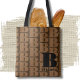This elegant black and brown tote bag is minimal and modern. Enter your initial to create a classic geometric pattern background. Then enter your initial again along with your name for a monogram bag that is perfect for business or personal use.