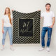 Black, Brownish & Gold Elegant Monogram Fleece Blanket