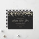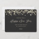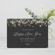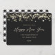 Black and white buffalo plaid New Year card featuring glowing lights and stars on a black background. Easily personalise this minimalist holiday card online.