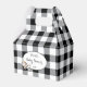 A cute favour box with a black and white Buffalo plaid pattern and a cartoon cow . Personalise them with your text . Ideal for baby shower and kids birthday :)