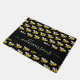Decorated with happy, smiling yellow and black bumble bees. A chic black background. Personalise and add a name. The name is written with a modern hand lettered stylie script with swashes. To keep the swashes only delete the sample name, leave the spaces or emoji's in front and after the name.