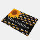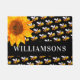 Decorated with happy, smiling yellow and black bumble bees and a large watercolored sunflower. A chic black background. Personalise and add a name.