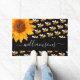 Black bumble bees sunflower monogram script doormat