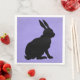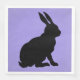 This paper napkin has a sitting black bunny in silhouette form with tall ears on a purple background.