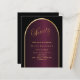 An elegant 90th birthday invitation. A black and burgundy background with a golden arch on the front.