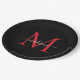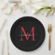 Black Burgundy Red Monogram Modern Elegant Script Paper Plate