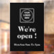 Let customers know your schedule with this black business hours window decal. Perfect for shops, cafés, restaurants, salons, and offices, this personalised design allows you to add your logo and opening times for a professional, branded look. Durable and easy to apply, it’s the ideal way to keep your storefront modern, clear, and welcoming.