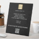 A black background. Personalise and add your business logo, name, address, your text, your own QR code to your webiste.