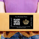 Black business name gold crown qr code rectangular sticker