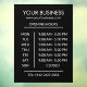 Looking for a simple and professional way to display your business hours? Look no further than our Window Cling! With Zazzle's personalised button, you can easily write down your business name and schedule and stick it to your windows or doors. This sleek and versatile cling is perfect for any business, whether you're a dental clinic, a hair salon, or a cafe. Your customers will appreciate the convenience of being able to quickly and easily see your opening hours, and you'll appreciate the boost in foot traffic. Upgrade your storefront with our Window Cling today! =)