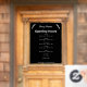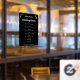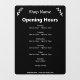 A simple and minimalist window cling on black background with ornament to display opening hours of your shop or company on the shop window or the front door.