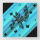 black Butterfly on Rainbow Square Wall Clock