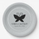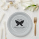 Black Butterfly paper plate featuring an elegant black butterfly with spread wings and a pair of curly antennae, all on a pale grey background and within a round white border, with custom text. © Morning 6