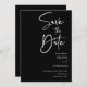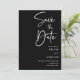 This luxurious Black Calligraphy Minimalist Wedding Save the Date card brings a modern and elegant touch to your wedding stationery, perfect for creating an atmosphere of a high end wedding. Crafted to perfection, this simple yet exquisite design effortlessly blends the beauty of calligraphy script typography with a minimalistic approach, exuding sophistication at its core. The sleek black background sets the tone for a refined and stylish affair, while the minimalistic design ensures a timeless appeal that will resonate with the discerning eye. With a focus on clean lines and contemporary aesthetics, our minimal and striking save the date card truly stands out while ensuring a lasting impression on your guests. For matching items, visit the Black Elegant Minimal Modern Dark Wedding invitations collection.