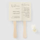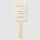 Whimsical minimalistic modern, light beige background, customisable black script calligraphy, elegant wedding hand fan design. The pale beige with customisable black typography evokes a feel of classic elegance.